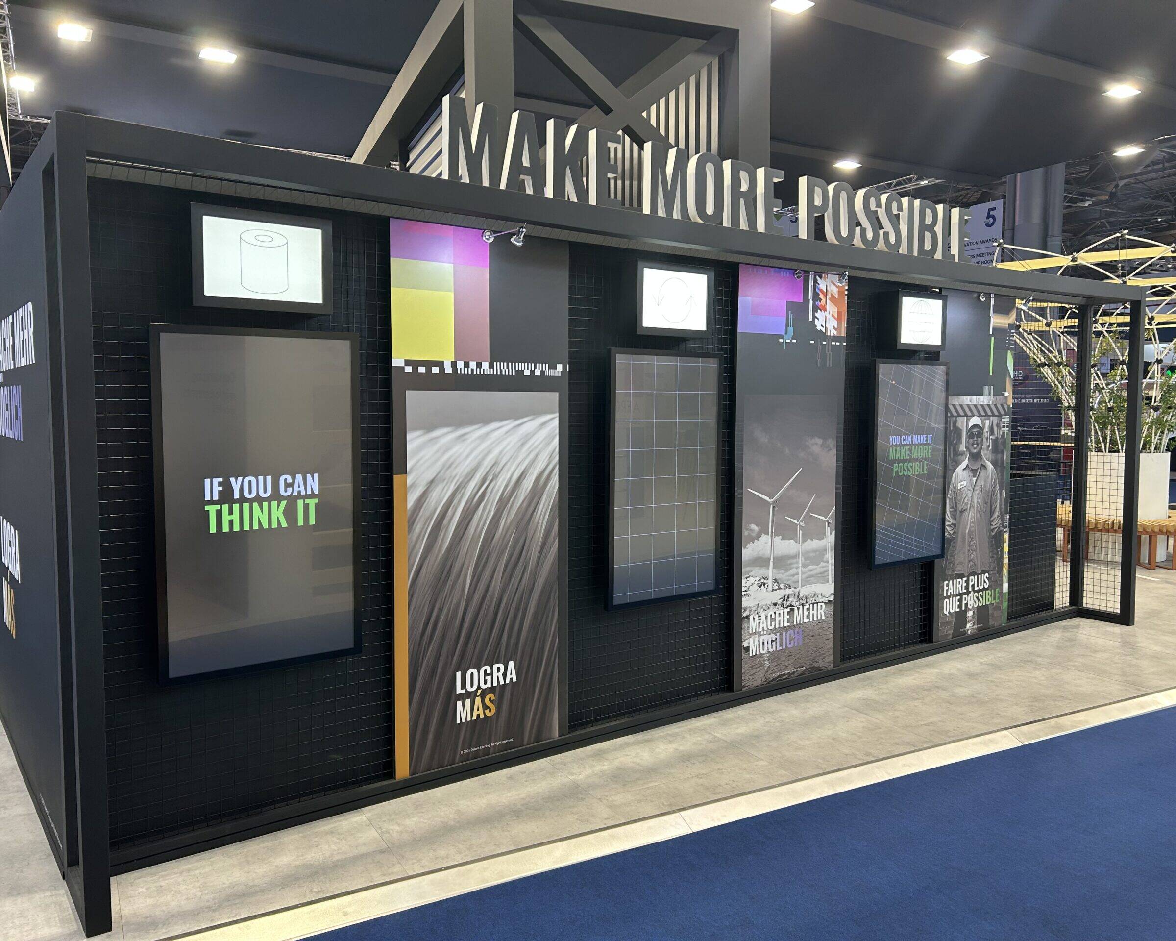 For DSA’s client Owens Corning (OC) at JEC, the goal was to simplify how dynamic content is delivered during exhibitions — ensuring updates could happen instantly and remotely, without technical delays or heavy manual intervention. The vision was to introduce a seamless system that combined flexibility, efficiency, and visual impact, while reducing waste from traditional printed materials. This partnership would allow DSA to extend its sustainable, technology-led design ethos beyond stand construction — giving clients full control of their digital presence through one connected platform